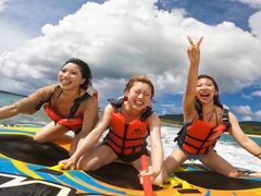沖縄マリンスポーツの定番「バナナボート」。他のどこよりもスリル満点で、暴れ馬に乗っているかのような絶叫アトラクションを体験いただけます。