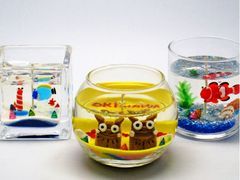 お好みの透明グラスを選び、貝殻や砂、カクレクマノミ、カメなど1000種以上のガラス細工を並べていきます。仕上げに香りを付けて、オリジナルクリアキャンドルを作成しましょう♪