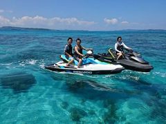 ジェットスキーで津堅島までツーリング!ジェットスキーツーリングは、水上を走るジェットスキーを使ってツーリングするアクティビティです。スリルと爽快感を味わえるスポーツとして人気があります。