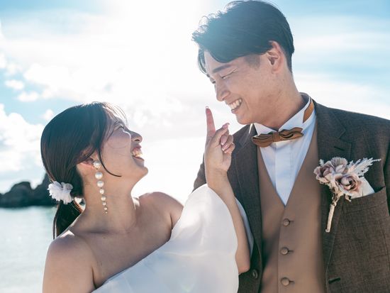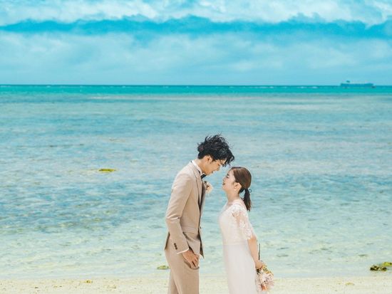プロのカメラマンがおふたりのビーチ撮影をサポート。沖縄で前撮りを希望している方にもオススメです!