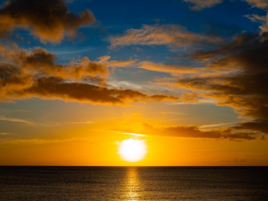 クルーズからゆっくりと海に沈んでいくオレンジ色の夕陽を鑑賞