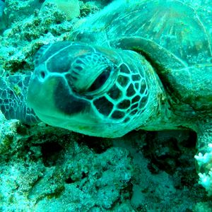 ウミガメ見れないかもなあと思いながら行きましたが、ダイビングした2回ともしっかり見ることができました。2回目なんてウミガメとの距離1mくらいしかなくて、その綺麗さにびっくりさせられました。