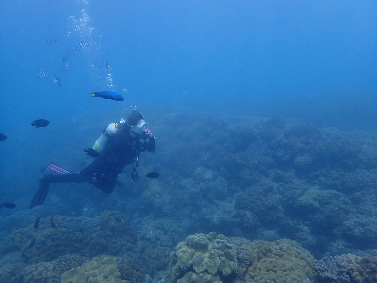 久しぶりではじめ耳抜きがうまくできませんでしたが、慣れてきて、無事2ダイブ潜ることができました。
