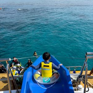 海に入った瞬間直ぐに、大好きな海亀や綺麗な珊瑚が目の前に広がっており、大興奮でした🩵!2ポイントまではお昼休憩も一緒に兼ねており、お昼は持ち込みですが船にクーラーボックスを置いてくれてあるので冷やして保管する事ができます!また、ウォータージャグも置かれていたので給水もでき、とても助かりました🥤!