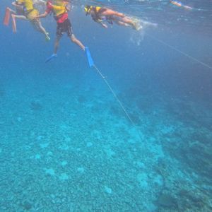 海底を海蛇が泳いでいるのを見たり(20mくらい離れてた?)、小さな魚達が泳いでいるのを見たりしましたが、この日だけなのか分かりませんが深い場所で(珊瑚礁を保護する関係でだと思いますが)シュノーケリングしたので、生き物観察というよりはアクティビティーの楽しみの方があるかなと思います。