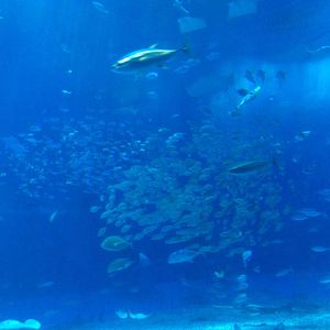 目の前に光のシャワーが現れるまで忘れていた分、悠々と巨大なジンベイざめが次々と光のシャワーを浴びながら泳いでいく姿を真下から見る情景は圧巻です!感動です!このツアーならではです。館外の公園もすばらしくここで3時間30分を取ってくれるツアーは是非お薦めです♪ここでの動画は旅の宝物となりました。お見せできないのが残念!