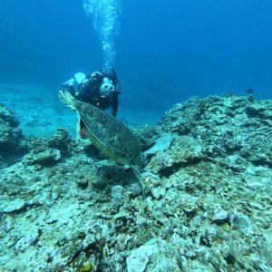 今回は3ダイビングしたうちの2つのポイントでウミガメに遭遇することができました!インストラクターのかっちゃんも凄く良い人でした。ウミガメ との写真もいっぱい撮ってくださりありがとうございました!また参加したいです!!