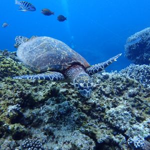 リーファーズさん利用は2度目ですが、前回利用したことを覚えていただきました。今回は息子が体験ダイビングに参加したいということでの参加でしたが、三本も潜れた上にウミガメとの2ショットも撮れて大満足でした。私もシュノーケリングながらウミガメが海面に浮いてくる姿を見ながら泳げて大変満足しました。