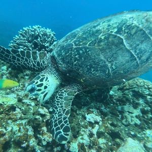 天気が良かったで、海がとても綺麗でした。珊瑚や魚も綺麗で、3個目のポイントで海亀と出会いました!!スタッフの皆さんも優しくて、素晴らしい体験でした!!