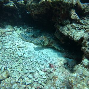 カメに出会えるポイントで2匹のカメに会え、ネムリブカと言う臆病なサメにも出会えました!