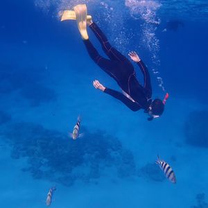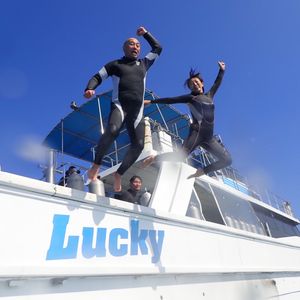 今年の12月の晴れ日は少ないとの事でしたし、前日も風が強く吹いていたので海に入る事に心が折れそうだったのですが、良いお天気になり寒さ対策として船上ではボートコートという最強暖かいコートをお借り出来たので、丸1日海の上で過ごしてもめげる事無くとっても楽しかったです♡担当してくれた『シャチ子ちゃん』も寒さに対してももちろん、全てにおいて気にかけてくれて有り難かったです♡慶良間の海はとても綺麗でした。でも、もっと綺麗な日があると聞き又行きたいなぁと思いました。なかなか上手く潜れなかったし、船上からのダイブも楽しかったので今度は子供や孫と行けたらいいなぁ〜と思います。写真も沢山撮っていただけて本当に嬉しいですシャチ子ちゃん、船長さんはじめスタッフの皆さんとても感じ良く本当に良い体験が出来ました‼️ありがとうございました〜❣️