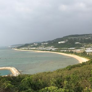 知念岬からの海の眺めは最高!「地球は丸い」を実感できます。いつまでも眺めていたい贅沢な絶景。沖縄と言えばコバルトブルーの海。始めは曇りがちで海の色も今一つでしたが、新原ビーチに行った頃には、サンゴが散らばる薄ベージュの砂浜と、海とのコントラストが期待通りでした。