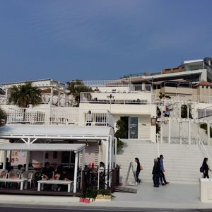 最後に瀬長島ウミカジテラスに行きましたが空港の近くというのもあって飛行機が頻繁に飛んでるのを眺めつつ白基調の建物が並ぶたくさんのお店を回って歩きました。