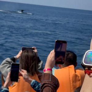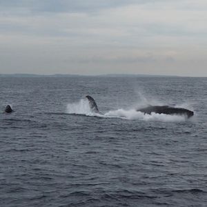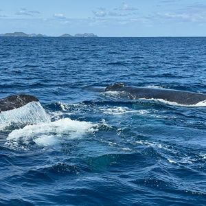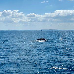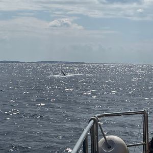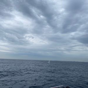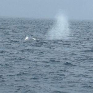 くじらスポットで待っていると、遠くにくじらがしおをふいてるのが見えました。他にも3艘の船が集まっていて、まわりを囲っている感じでした。そこから何度か移動して、しおをふいているところは何度かみることができました。ほかの船はもう帰ってしまい、あと一回見たら帰ります、と言われたあと、すごく近くの水面下にくじらがいるところに移動してくれて、しばらく待っていたら大きくうねって尾びれを見せてくれました!感動でした!最後までねばってくれてとてもよい経験ができました。ありがとうございます!