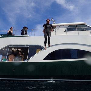 ブリーチと呼ばれるクジラのパフォーマンスを間近で見れてとても感動しました。波が高く浮遊感が繰り返しあり、酔わないようにするのに必死でした。気分が悪くなってもすぐ戻ることができないので、覚悟が必要です