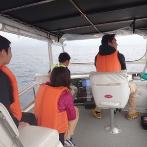 船はかなり揺れました。3歳の子どもは抱っこしていました。酔い止めを飲んで参加したので全く酔いませんでしたが、揺れが気持ちよくて帰りは眠たくなってしまいました。海上は風が強いので長袖の上着を持っていって良かったです。