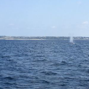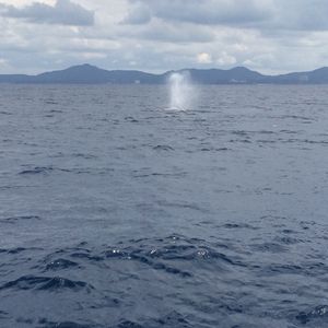 わたしたちは運が良かったようで、出航してから15分ほどで最初の潮吹きを目撃することができました。居たのは、親子クジラとオスのクジラの計3頭でした。