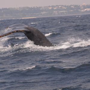 大きなカラダと大きな尾ビレ。生のクジラをすごく近い距離で見ることができました。潮吹きの飛沫が船までかかるくらいの距離でした。