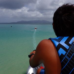 ヘトヘトに疲れたけれど、自分がやらないときは、お兄さんのジェットスキーの後ろに乗っているから爽快!