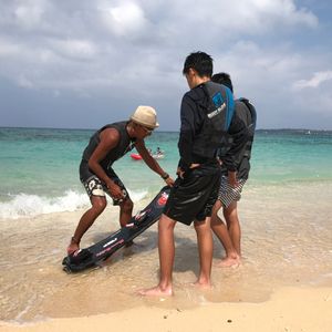 フライボード体験(予約)時間の1~2時間前から集合場所のビーチへ行って時間まで海で遊ぶなり身体を十分に慣らしてから、メインのフライボードを楽しむといったスケジュールが余裕を持って遊ぶのには良いのかなと思います。