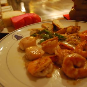 車えびとホタテ貝柱はおいしかったですが、せっかく予約したのに席の位置が悪い、4人分としては狭すぎる。あと、パフォーマンスをしてくれた若い男の子は、コショウ瓶を投げ、2回ぐらいは地に落ちました。思い出のある場所として行ったので、ちょっとガッカリしました。