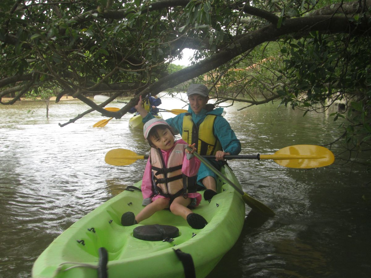 両親は父母ふたりでカヤックにのり、私は5歳の娘と二人でのりました。カヤック自体の操作はとっても簡単。カヤックを漕いでいるのは約1時間程度ですので、適度な運動量で楽しめます。足のつくような川の深さですので、ディープなカヤックを望む人にはむかないかも知れませんが、子連れで気軽にマングローブを見たい人には最適と思います!
