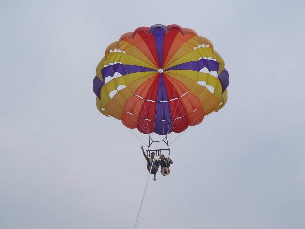 友達とパラセーリング参加しました!景色は綺麗で上空は気持ちよかったです。ただ…船酔いが…船の揺れに耐えきれず全力リバースしてしまいました(´д`)でも、スタッフがとても親切でゴミ袋を用意してくれたり、冷たい水をくれたり、汚れ物の処理までしてくれました(^_^;)