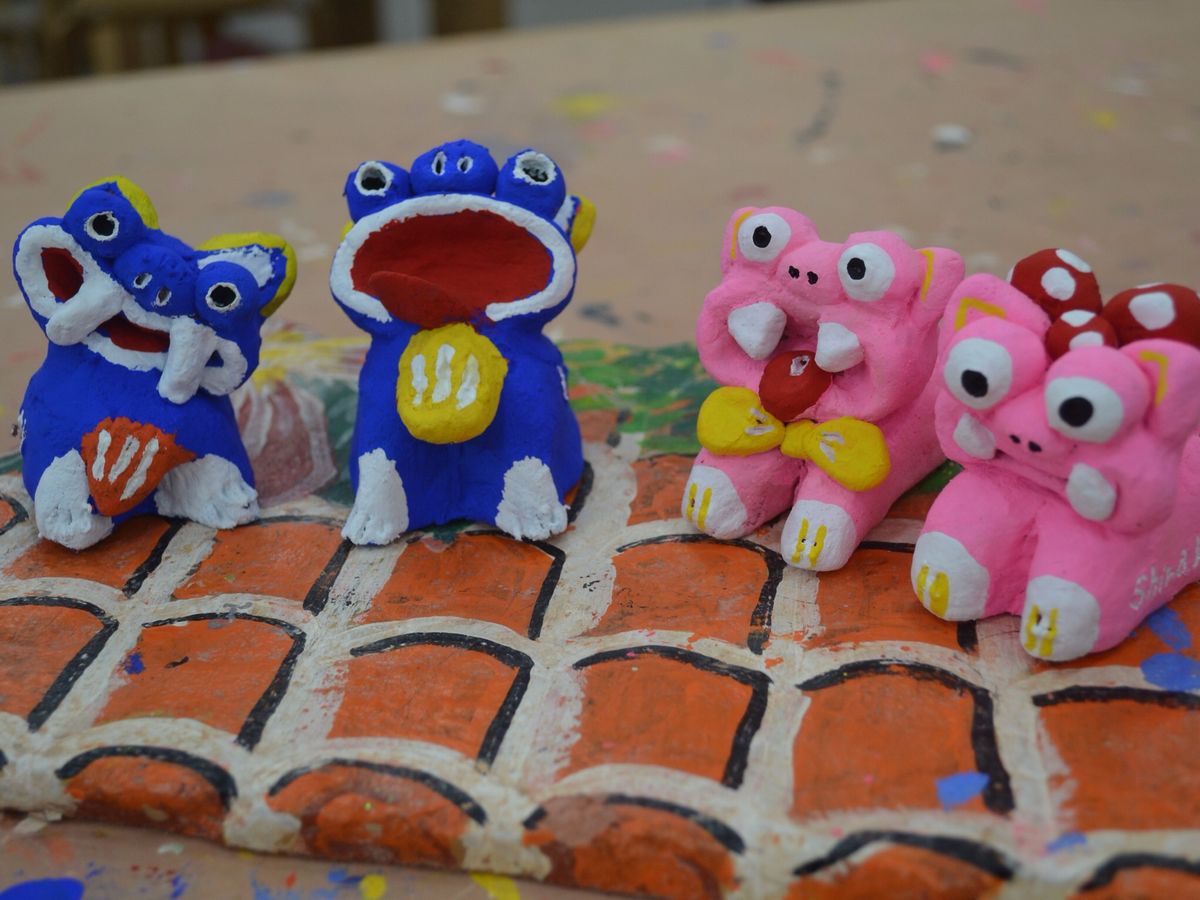 形作りから絵付けまでだったので、どうなるのか不安でしたが、なんかわたち親子らしいペアのシーサーになりました。