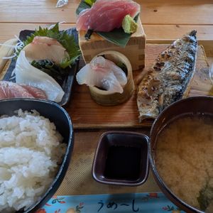 国頭港食堂のお刺身ランチはとてもおいしかったです。人気の店だけに開店待ちのお客さんの多い中、開店と同時に食事ができました。