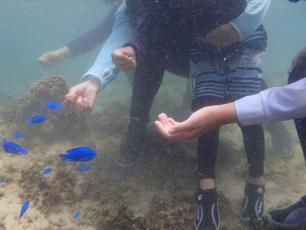 6歳娘はゴーグルを付けた後、鼻で息が出来ないことに戸惑いましたが、女性の方が優しく声を掛けて頂き海に入ることが出来ました。9歳娘は海の広さと魚が近くに来ることに少し怖がり最後で少しだけ海中を見る事ができました。海の中はとても綺麗で終始感動でした。