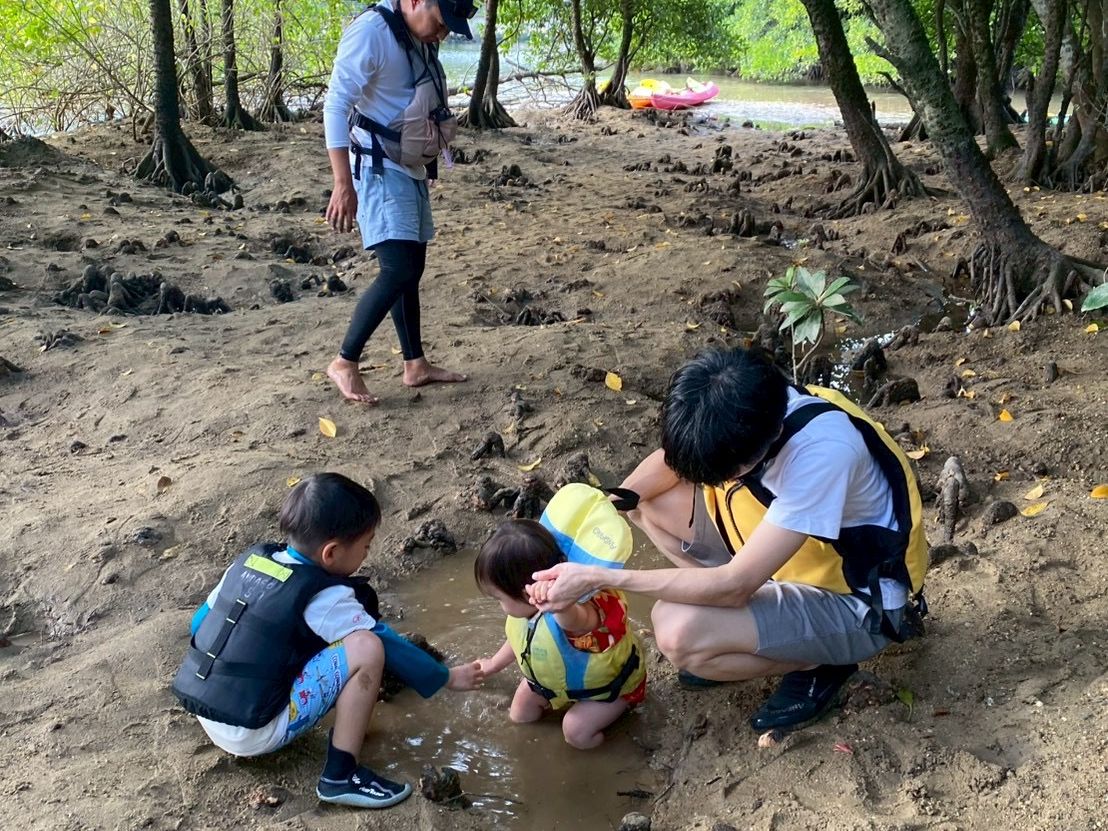 一歳児が怖がるかもしれないと思っていましたが、全く怖がることなくカヤックに乗り、逆に、マングローブの中を散策したのがとても楽しかったようで、帰りたくないと大泣きされました(笑)