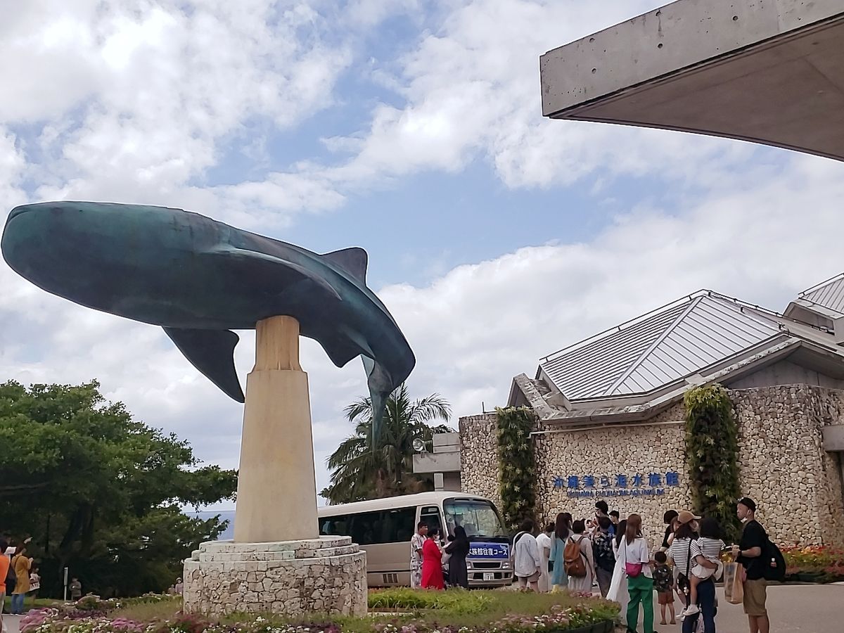 美ら海水族館は、世界最長飼育記録という巨大なジンベイザメはじめ、沖縄ならではの熱帯魚などの生態がゆっくり見られました。大水槽は、いろんな角度からも見学できて楽しいです。水族館の外には、イルカショーがああります。