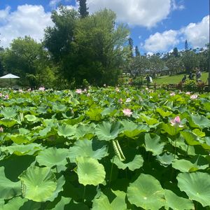 広い池に一面の蓮の花が、涼しげできれいでした。園内も花でいっぱいできれいでしたが、やっぱり暑い。