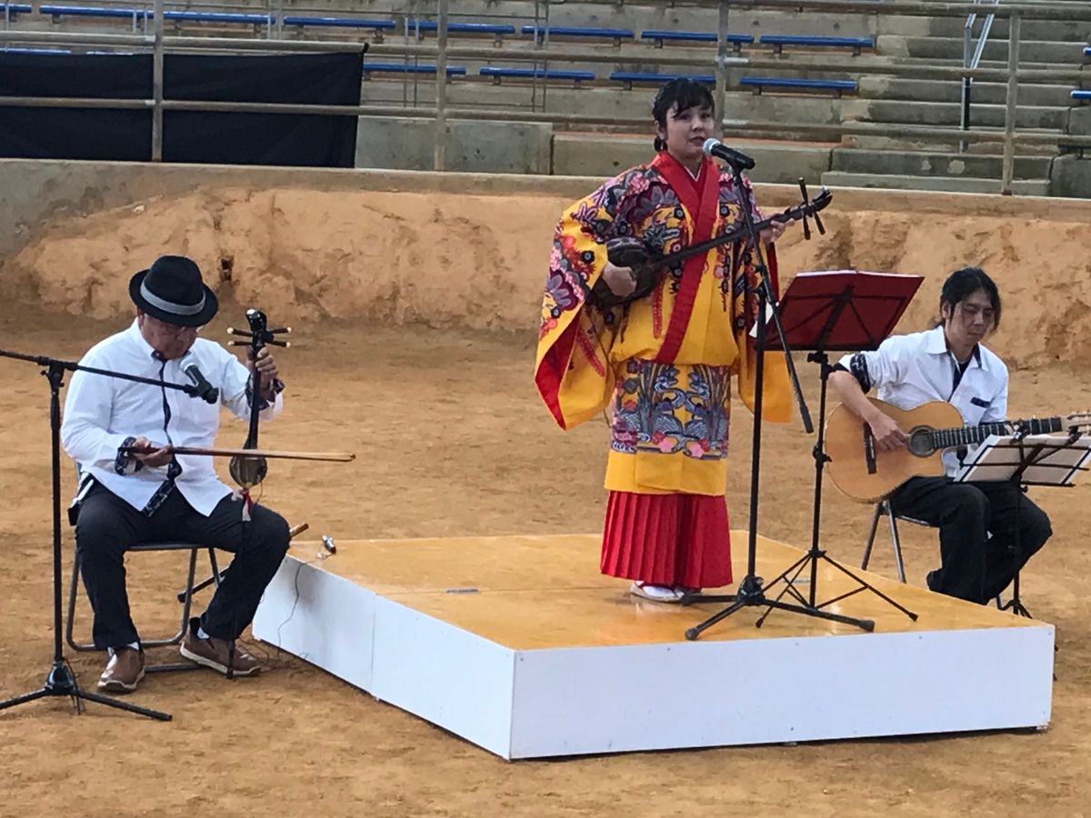 オープニングで沖縄の歌が数曲あって、最後には一緒に手を動かす踊りをした。