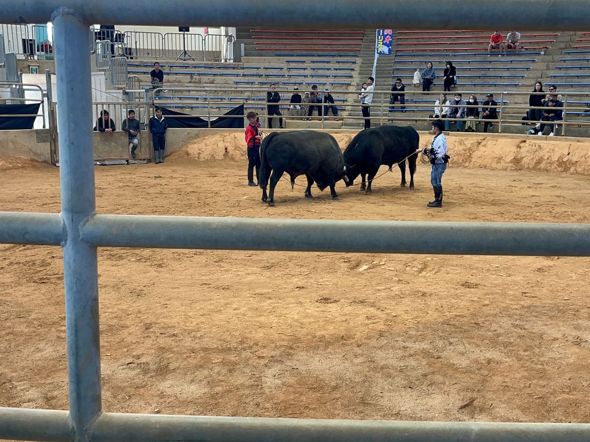 闘牛は大きくて迫力があり、エキシビションは2つ行った。最初の闘牛エキシビションは直ぐに1頭が逃げて決着がついたが、次のエキシビションは4つに組んで勝負がつかず引き分けになった。