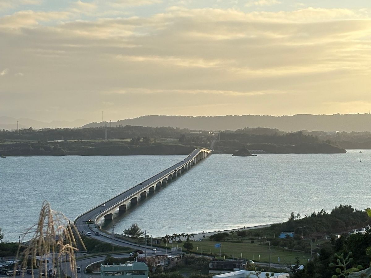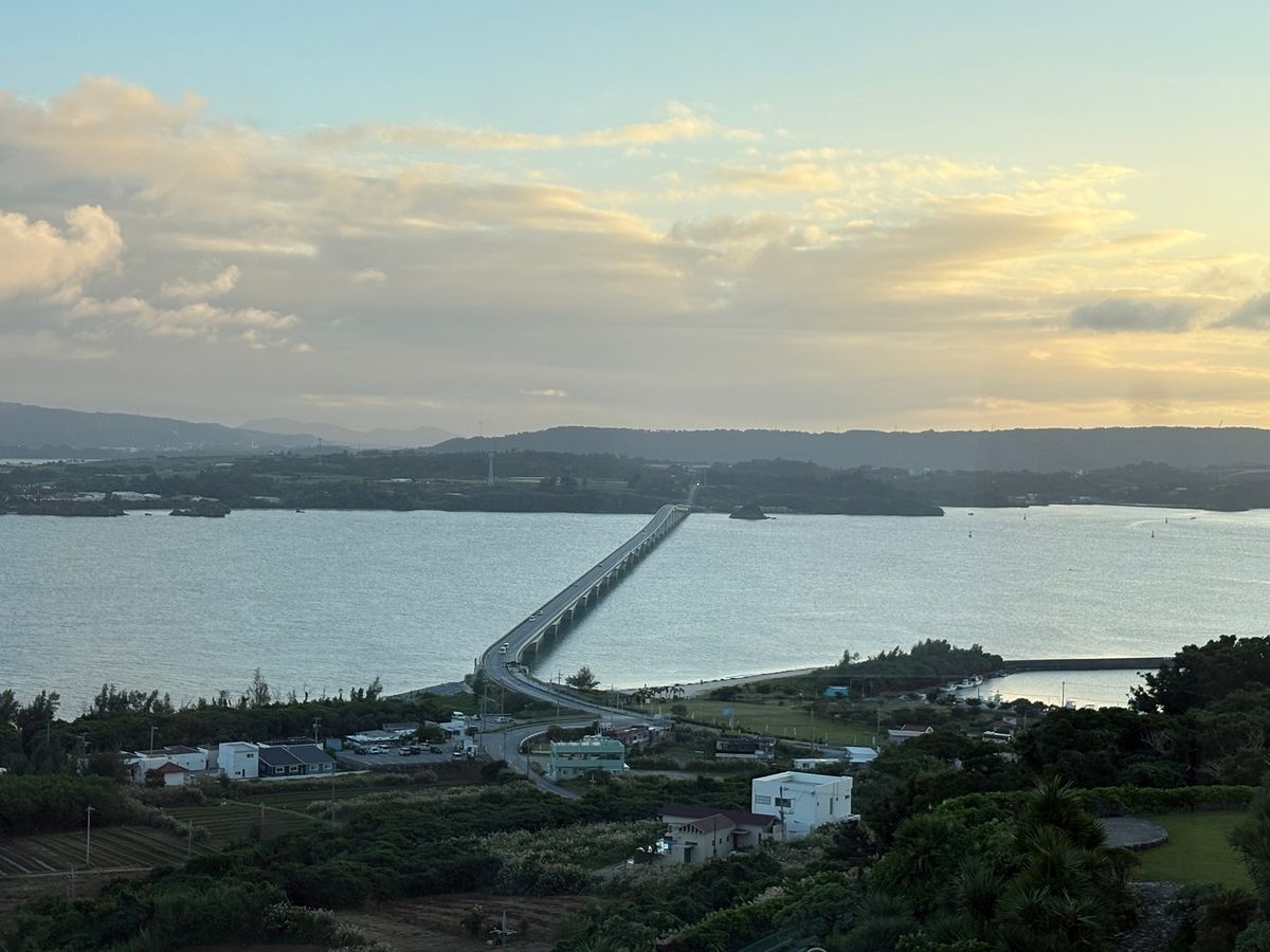 チケットを引き換えると、電動カート乗り場があって、少し並びましたがすぐに順番が来て乗車することができました。電動カートでゆっくりと登って行き古宇利大橋が良く見える場所を過ぎると、下りになり入口に到着します。タワーでは景色を眺めたりお土産を買ったりと、最上階の鐘を鳴らしてもいいかもしれません!今回は夕方に訪れたので、夕景が素晴らしかったです!