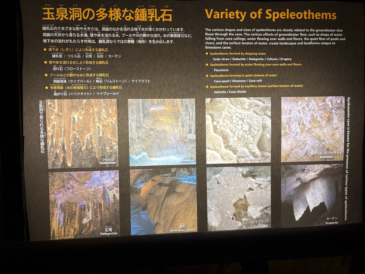入り口を入りすぐに玉泉洞に行きましたが、11月だというのに少し汗ばむ感じで、鍾乳石から垂れてくる雫がチョッ~ト気持ち悪かったです(;^_^A。