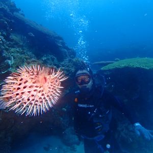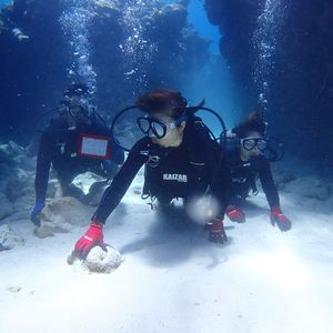 梅雨の合間の曇り空の中、体験ダイビングができました。年齢制限もクリアでき、親切にガイドしていただきました。写真がうまかった!!