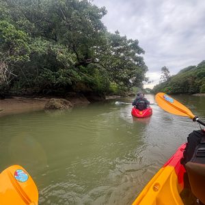 カヤックは初めてでしたが、最初に少しレクチャーを受ければ簡単に体験することができました!また、小雨の中での体験になりましたが、問題なく楽しむことができ、オフシーズンの沖縄でできる数少ない体を動かす体験で、妻も喜んでました!