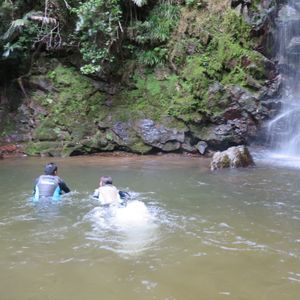 11月で、ウェットスーツを着ていたとはいえ水は冷たかったですが、滝に打たれたり、滝つぼに飛び込んだり、思い切り水遊びができて本当に楽しかったです。