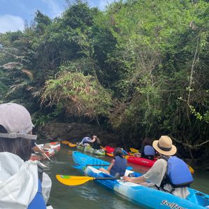 朝早いツアーが多いカヤックでしたが夕方ツアーを見つけて参加しました。サンセットの時間に合わせたシーカヤックでしたがあいにくの曇天でサンセットが見えないと判断すればマングローブの皮に変更。どちらも捨て難いツアーでしたが今回はマングローブでした。夫と2人で参加、体力に自信がなくても二人乗りなので交代で頑張れました。神木ガジュマルの木も圧巻、のんびりカヤックのツアーが楽しめました。スタッフのお兄さんに紹介してもらった鉄板焼きのお店もとても美味しかったです。