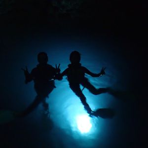 家族3人で参加しました。毎年沖縄に来ているので色々なツアーに参加しましたが、ナンバー1といっていいくらいの体験でした!夜の青の洞窟自体も素晴らしいのですが、ガイドさんのサービス精神も素晴らしく、本当に楽しめました!フィンの装着なども手伝ってくださるので夜のツアーは不安…という方も絶対大丈夫です!青の洞窟での滞在時間もしっかりとってくださるので文句なし!また来年もリピートしたいですが、他のツアーにも参加したいです。