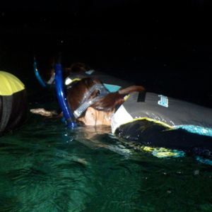 真っ暗な海の中を懐中電灯を照らしながら潜って夜の魚を見ました。