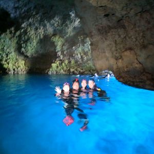 青の洞窟に行きたくて毎年沖縄にきていますが、毎回波が高く行けずだったので、今回で3回目の挑戦でした。待った甲斐がありました。青の洞窟は2組程しかおらずゆっくり見る事ができて凄く感動しました!!普段は人がたくさんいると言うのを聞いて、凄くラッキーだな〜と思いました(^-^)v案内もとても丁寧で、いろいろ勉強になりました。写真もたくさん撮って頂きありがとうございました(*'ω'*)ジンベエザメも今度は体験ダイビングでもっと近くで見てみたいと思うくらい楽しかったです‼︎ジンベエザメのスポットでも青の洞窟でも自由に泳がせて頂きとても楽しめました╰(*´︶`*)╯♡