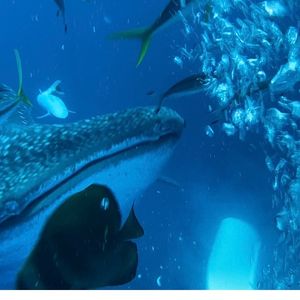 沖合いにある、定置網にいるジンベイザメをシュノーケルや、ダイビングで見るツアーです。少し、濁りがありましたが、間近で観察することが出来て感激でした。美ら海で初めて、ジンベイザメを見た時に感激しましたが、直接観察する事が出来たので、それを凌駕するアクティビティーでした。