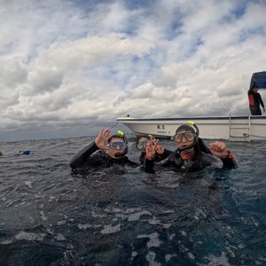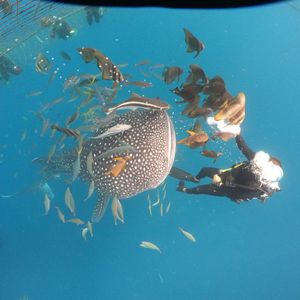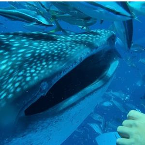 星5つです!!本日、ジンベエザメと一緒に泳ごう!に参加しました。最高でした! 漁港から船でジンベエザメエリアまでたったの3分!船から水中に入った瞬間、巨大なジンベエザメが真下にいたのでとても興奮しました!中学生の子供達もとてもはしゃいでました(笑)! 超間近で観るジンベエザメは本当にデカい&超可愛い!「あいる・ぷまんどぅ」さん、安全に配慮された親切丁寧なツアーを有難うございました。また 写真&動画、沢山撮ってくれて有難うございました! また行きたいと思います!