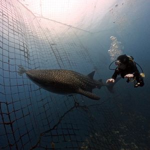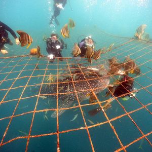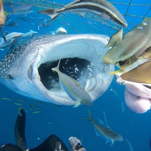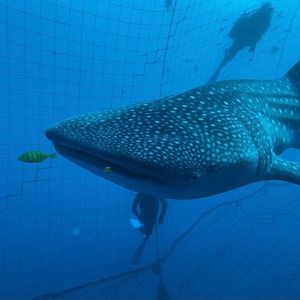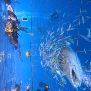 ライセンス持ってる方はせっかくなんで網の中に入って生のジンベイザメと一緒に泳ぐのが良いですよね