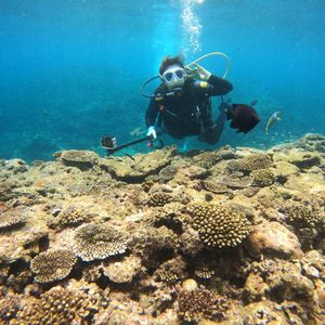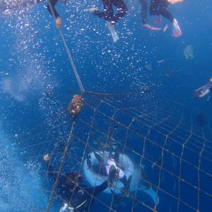 妻は5年ぶりのファンダイブでしたが、インストラクターの方の優しいエスコートと網に囲われている環境(網につかまれる、大幅な墜落や噴上げが無い)から、とても安心して楽しむことができました。
