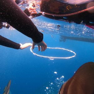 集合場所から船で数分、海に入った瞬間そこには2匹のジンベエザメが…!!!こんなに近くで見えるなんて思ってもいなかったので本当に本当に感動しました!