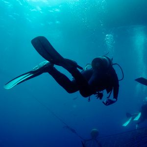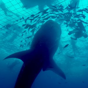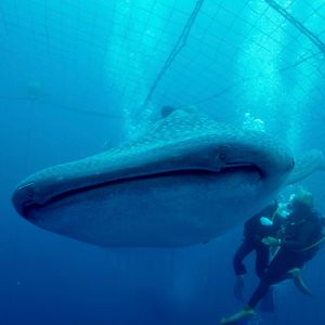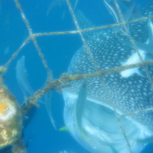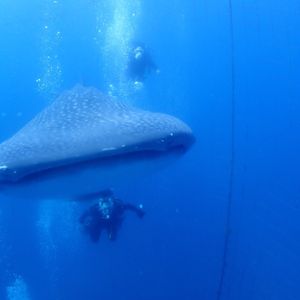 水族館では見れない距離と角度からジンベイザメを見ることができました。ジンベイザメのいるネットの中で20分ほど過ごしましたが、あっという間でした。